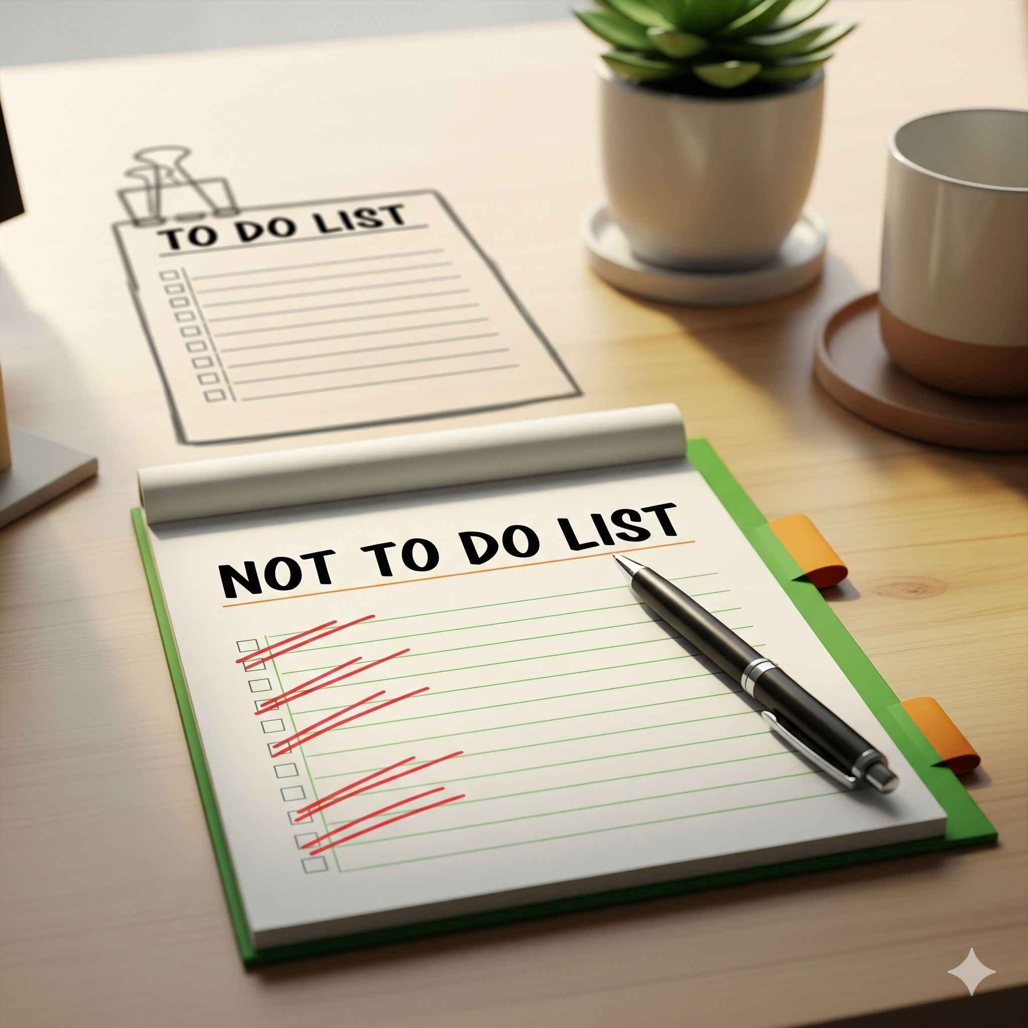 Not-to-do 리스트는 단순히 게으른 사람들의 변명이 아니에요. 이는 시간과 에너지를 낭비하는 활동을 의식적으로 제거하여, 정말 중요한 일에 집중할 수 있는 전략적인 도구입니다.