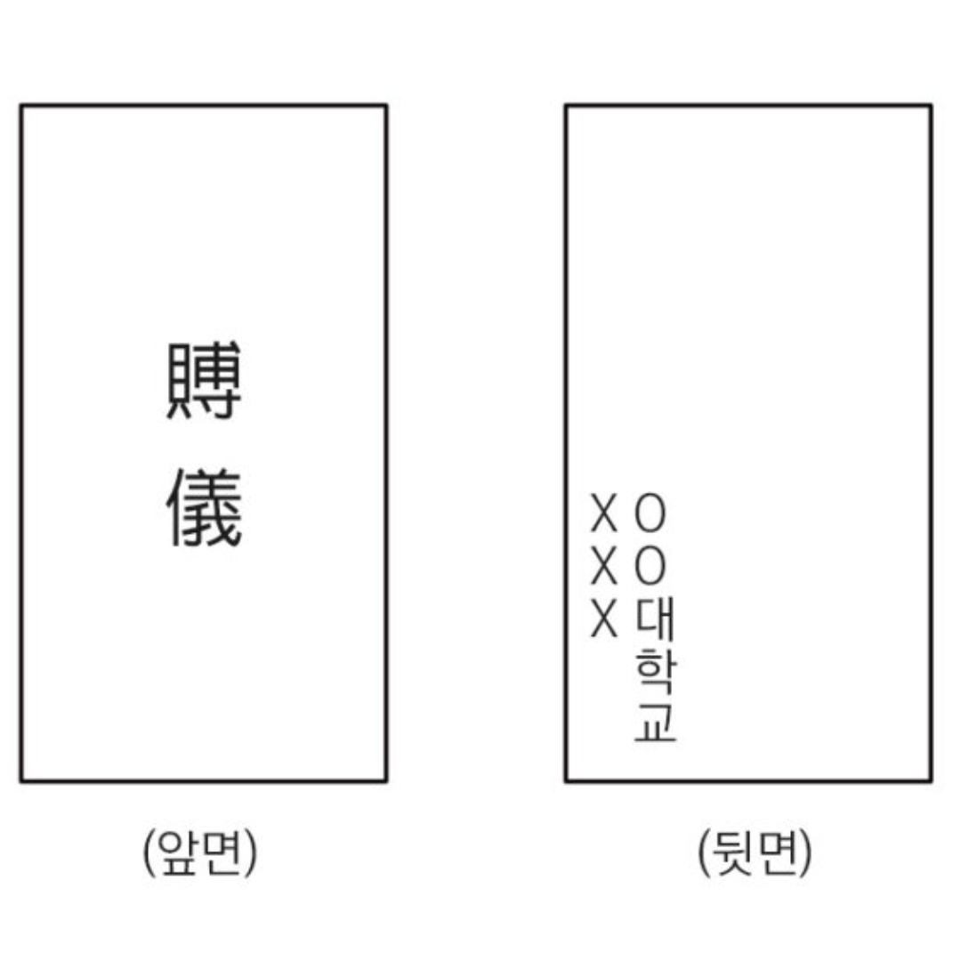- ✔ 봉투 앞면은 '賻儀(부의)'나 '弔儀(조의)'가 일반적이며, 뒷면에는 이름과 소속을 기재.