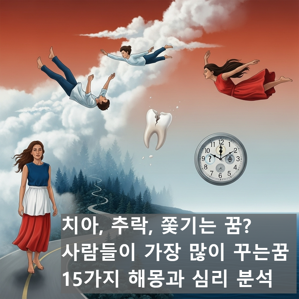 자, 그럼 지금부터 세계적으로 그리고 한국에서 가장 흔하게 나타나는 꿈의 유형과 그 속에 숨겨진 메시지를 하나씩 살펴보도록 하겠습니다. 꿈을 통해 무의식의 신호를 이해하고, 더 나은 오늘을 만들어갈 실마리를 찾아보세요!