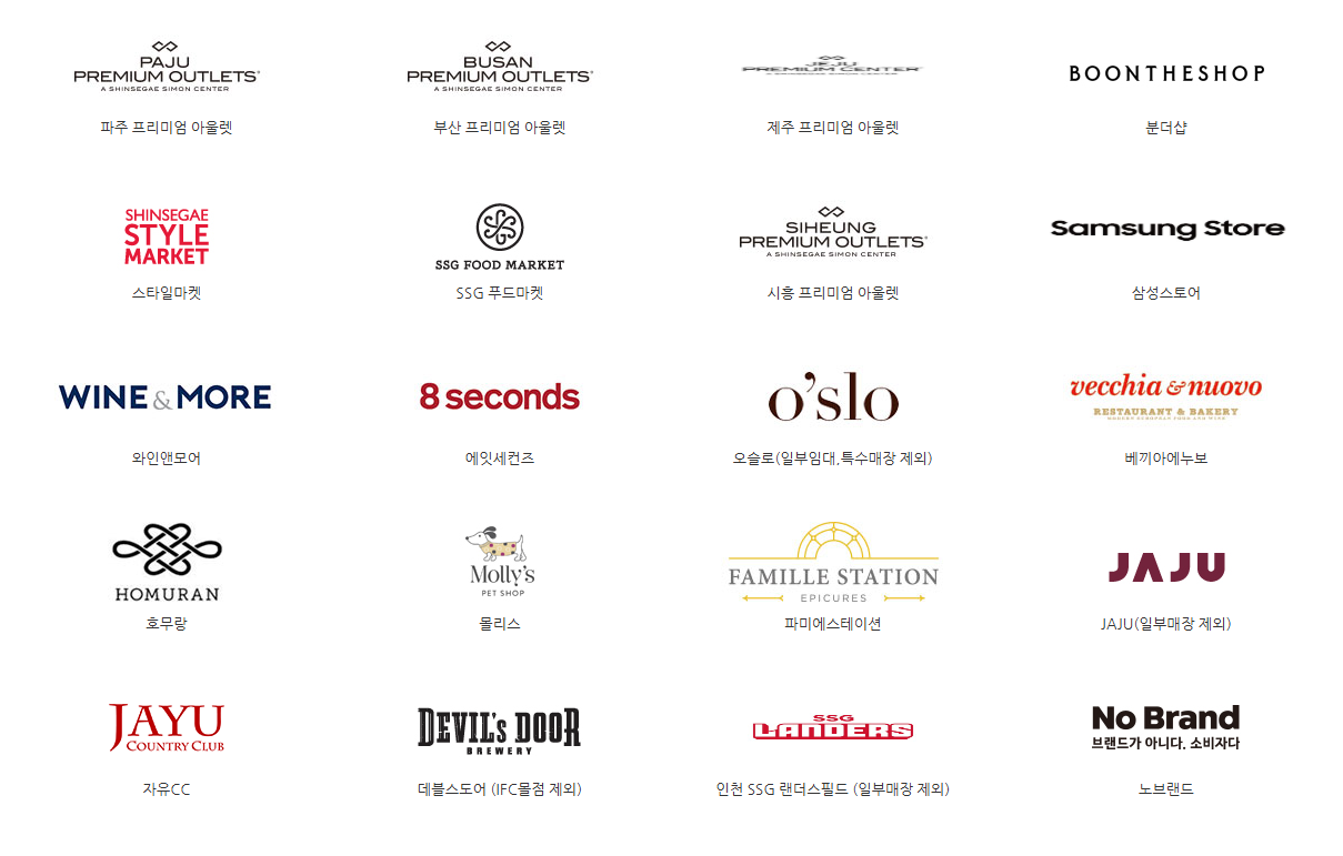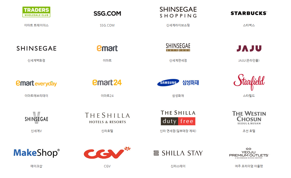 - 신세계면세점, 신세계사이먼 프리미엄 아울렛, 이마트 에브리데이 등 다양한 신세계 계열사.